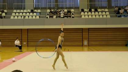 新体操競技は、今日は個人フープの演技をしました。日頃の練習の成果をしっかり発揮しました!