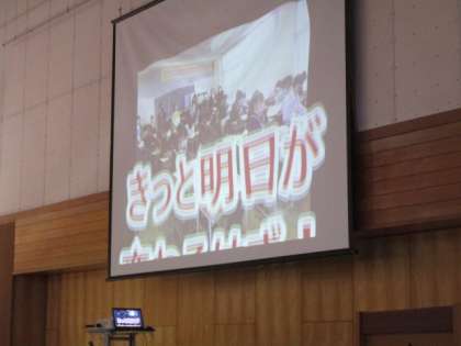 式辞の後は、校長が作成した1学期の生徒の様々な活躍の場面を捉えたスライドで締めくくりました。スライドと共に流れる歌の歌詞に想いが込められていました。