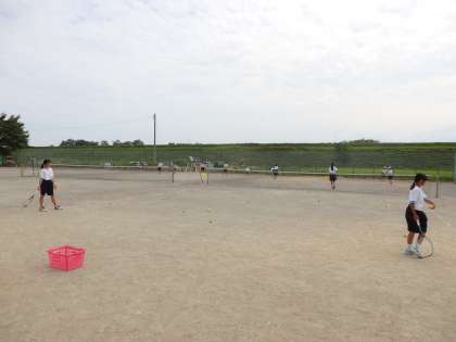 写真は、女子ソフトテニス部、ハンドボール部の様子です。