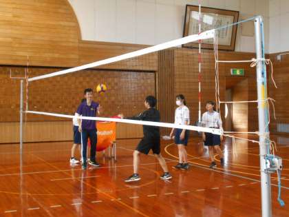 上:バレーボール部:顧問が球出しをしています。