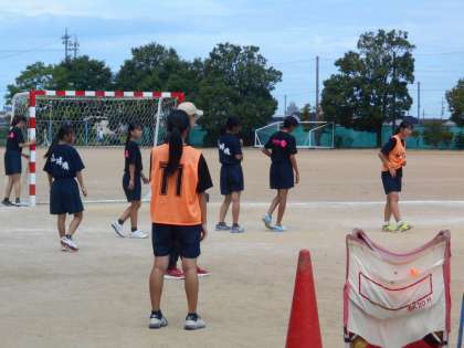 下:ハンドボール部:2チームに分かれ、フォーメーション練習です。