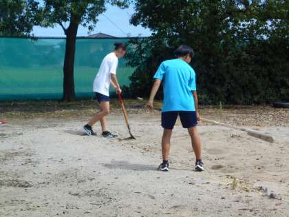 下:走り幅跳びの砂場準備