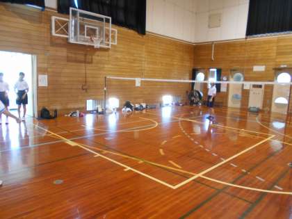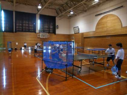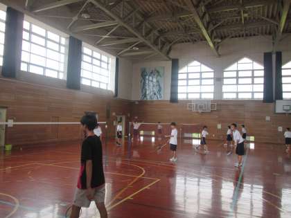 体育館では、バドミントン部、卓球部が黙々と活動しています。