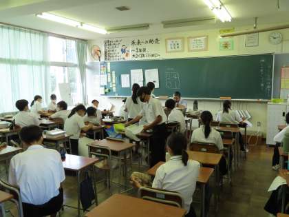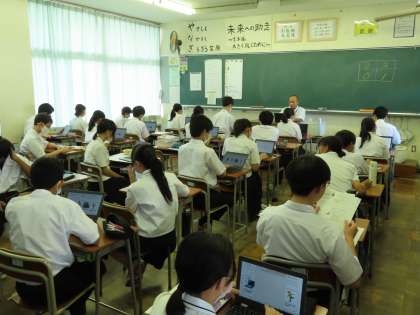 上から順に2組は学校生活アンケート、3組はクロームブックを使いアンケート、4組は夏休みの課題提出をしていました。