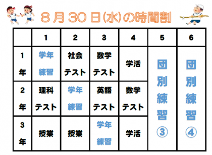8月30日(水)の時間割