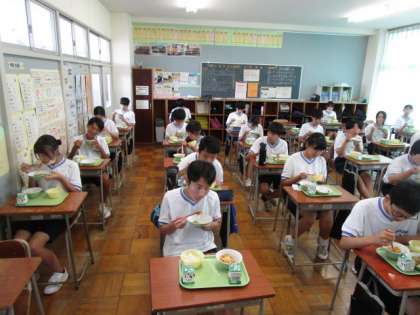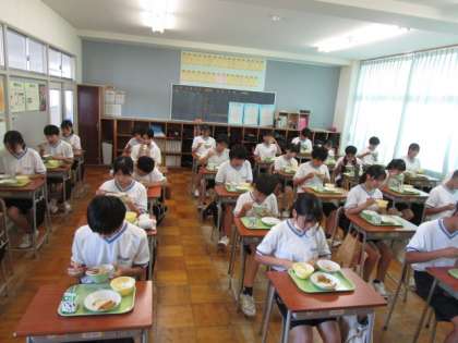 2学期の給食が始まりました。午前中は学年練習もあったので、お腹がぺこぺこの様子です。