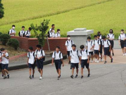 学校では、明日の体育大会に向けて最後の練習を行います。