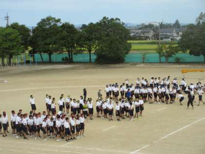 1年生は、1限目、学年種目の「台風の目」の最終練習を行いました。