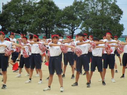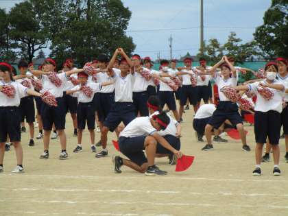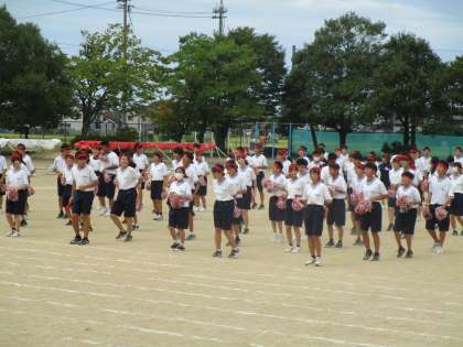 グラウンドや駐車場をめいいっぱい使って、隊形移動や動きの最終確認をしています。