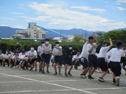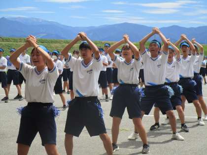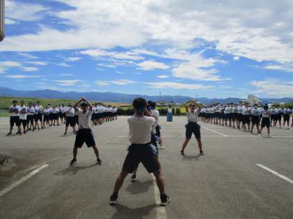 青空の下、青龍団が元気に最後の練習に励んでいます。