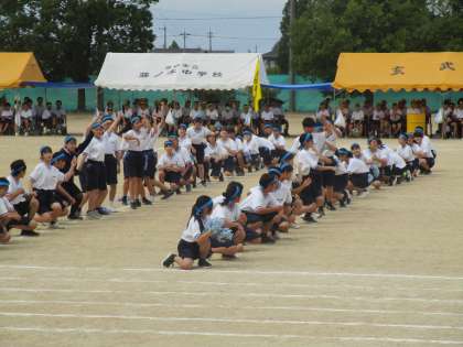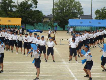 青龍団では、ウェーブを起こしたり、グラウンドに大きな円を4つ作って踊ったりするなど、工夫いっぱいの演技でした。