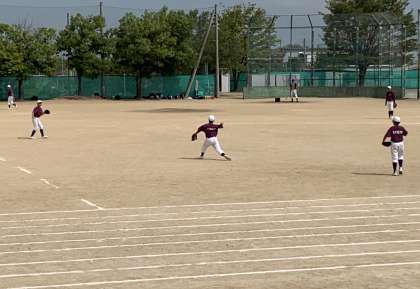 野球部は、ウォーミングアップ後、ノックで外野と内野の連携の確認を中心に練習しました。