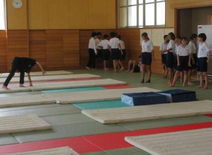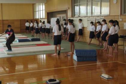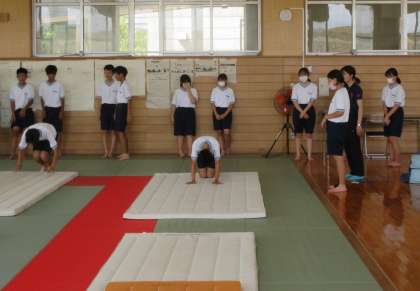 2年生の体育は、マット運動を行っています。