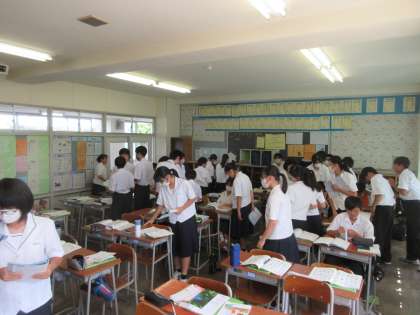 1年生の今日の授業の様子です。 写真上段 1−1 国語 写真下段 1−2 英語