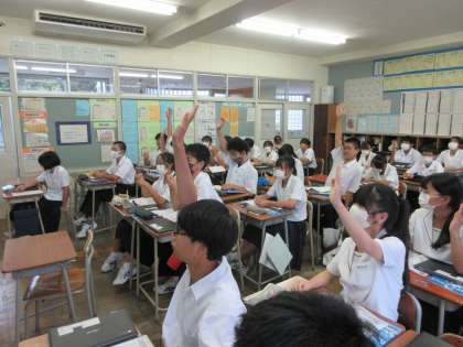 9月6日(水) 1年1組 授業風景 公開日 2023/09/06 更新日 2023/09/06 1学年 本日の3限目の授業の様子です。 教科は保健体育で「運動やスポーツの行う以外の関わり方」について学習しました。