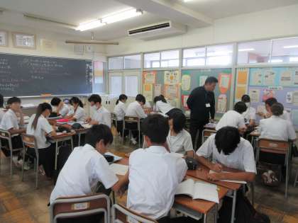写真上段 3−4 数学 写真下段 3−5 社会:自習自習生の授業
