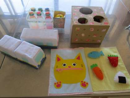 幼児の年齢や発達段階に応じた手作りおもちゃがたくさんできました。