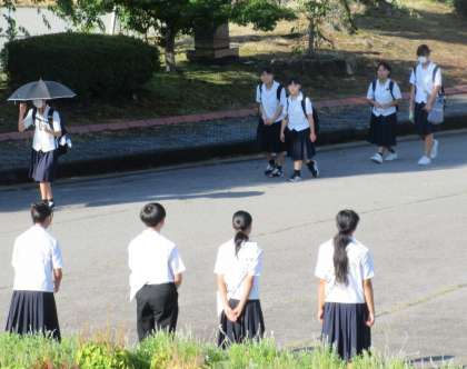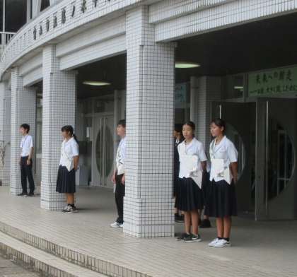 朝の登校時間に生徒玄関前で元気のよい声が響き渡っています。