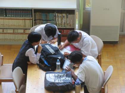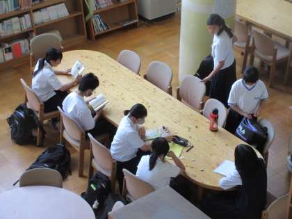 図書室では、読書部の活動と自習をしている生徒もいました。