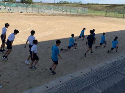 今日は、グラウンドでサッカー部のリーグ戦が行われており、空いているスペースでトレーニングをしています。