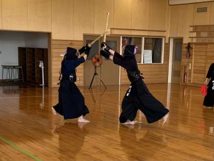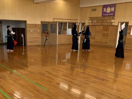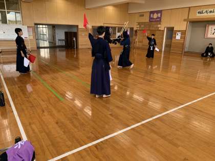 剣道部は、審判を付けた試合形式で練習を行なっていました。