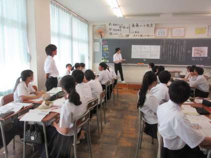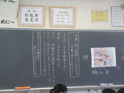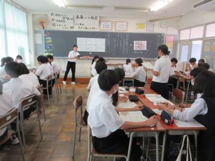 9月11日(月) 2年 授業風景 公開日 2023/09/11 更新日 2023/09/11 2学年 2年生の今日の授業の様子です。 2年1組でも教育実習生が、道徳の研修授業を行いました。 「ゴール」という資料で、今話題となっているバスケットボールの話でした。 みんな一生懸命考えていました。