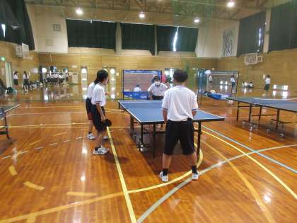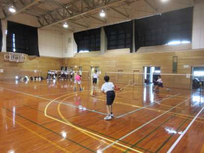 体育館では、バドミントン部と卓球部が練習をしていました。