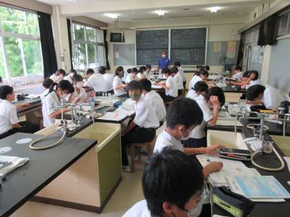 本日の2時間目の授業の様子です。 教科は理科で様々な気体を採取する実験を観察しました。