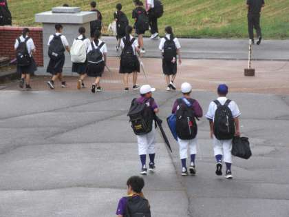 部活動中に雷雨となりましたが、部活動終了時刻には雨も上がり、傘をさずに下校できました。