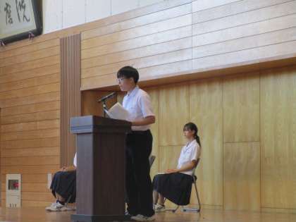 9月13日(水) 後期生徒会 役員選挙 公開日 2023/09/13 更新日 2023/09/13 生徒会 令和5年度後期の生徒会選挙を行いました。 会長、副会長候補と応援弁士による演説会では、全校が演説にしっかりと耳を傾けています。 写真上:選挙管理委員長 挨拶 写真中、下:立候補者演説