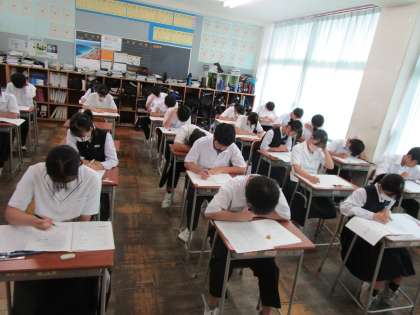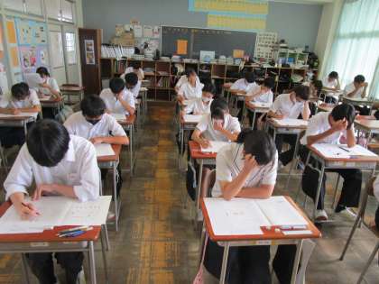 3年生は、昨日に引き続き、実力テストをしています。しっかり集中していますね。