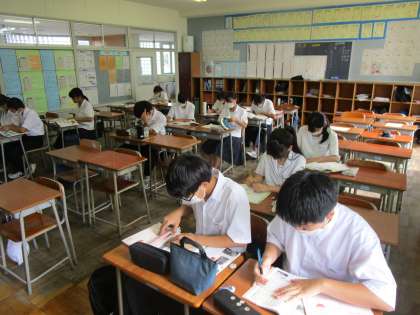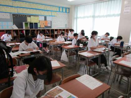 1年生は、各クラスに分かれて自主学習をしています。