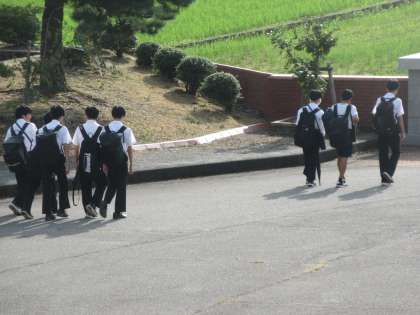 6限を終えて、3年生及び1・2年生の部活動のない生徒の下校風景です。