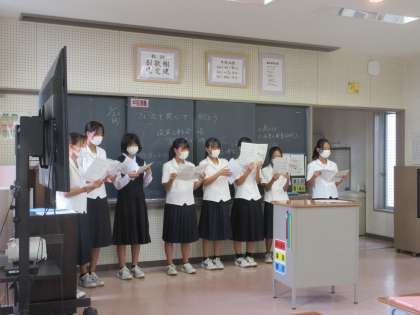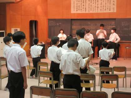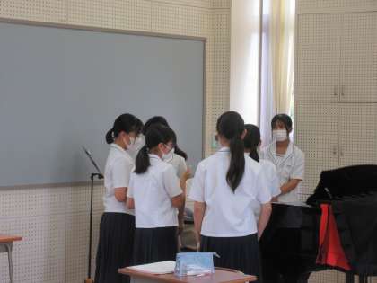教科は音楽で合唱コンクールの合唱曲のパート練習を行っていました。