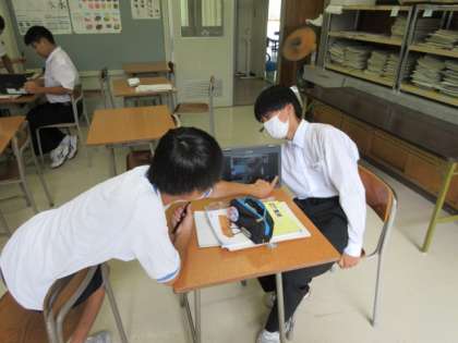 本日の3限目の授業の様子です。 教科は美術でデッサンするために手の写真を撮りました。