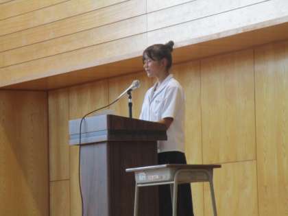 後期の生徒会長が挨拶を述べた後、鍋田校長から、後期の生徒会に向けて激励の言葉がありました。