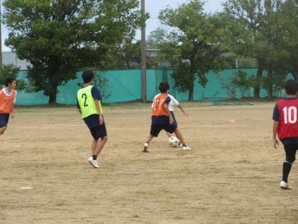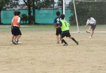 サッカー部は、ゲーム形式でシュート練習をしていました。