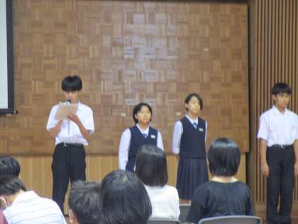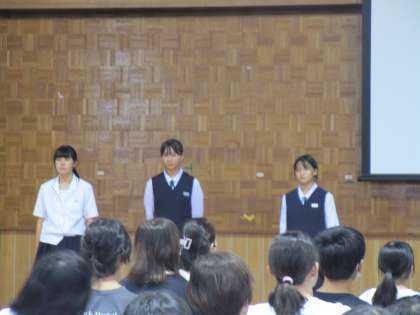 その後、生徒会役員から、学校生活に関わるプレゼンテーションをしました。