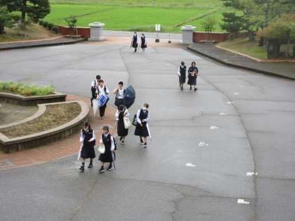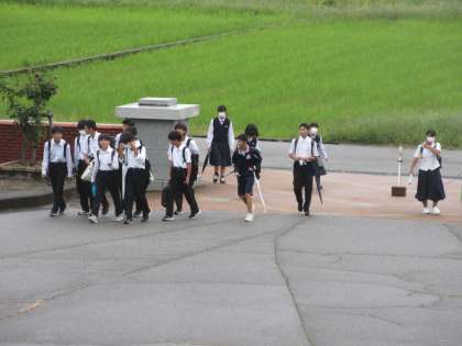 これまで登校時間には雨が上がっていたのですが、今日は、生徒の登校時間の後半になるとしっかりとした雨が降り、久しぶりに傘をさしながらの登校風景を見ました。