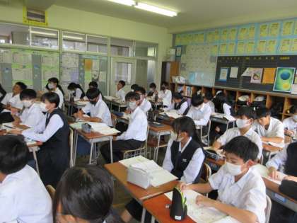 本日の2限目の授業の様子です。 教科は数学で方程式の解き方の工夫について学習しました。