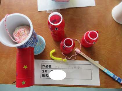 3年 家庭科「幼児が喜ぶおもちゃ」作品展示  1組