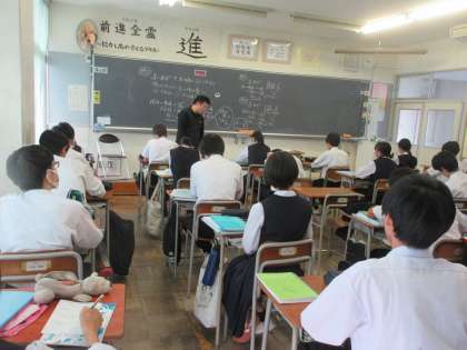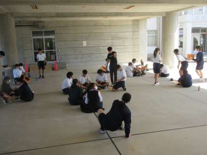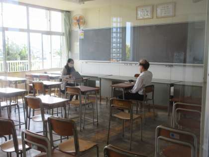 写真上段 3−3 英語 ALTとスピーキングテストを行いました。