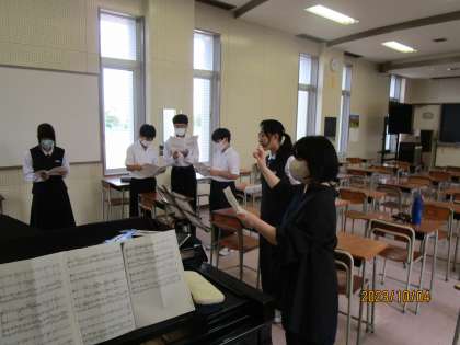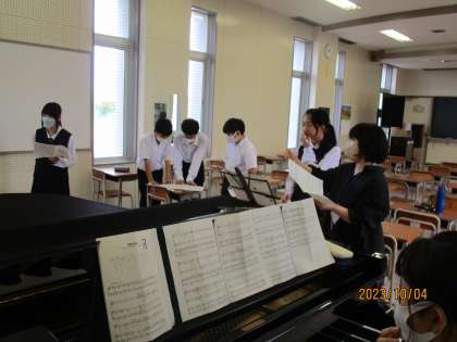 朝のわずかな時間や昼休みを使って、合唱リーダーは打ち合わせや指揮、歌の練習をしています。