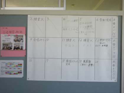 10月5日(木) 3年 合唱コンクール 練習取組 公開日 2023/10/05 更新日 2023/10/05 3学年 3年生は、中学校生活最後の合唱コンクールになります。 どのクラスも頑張って取り組んでいます。 各教室前には、それぞれのクラスの合唱練習の取組に関する掲示物を展示しています。