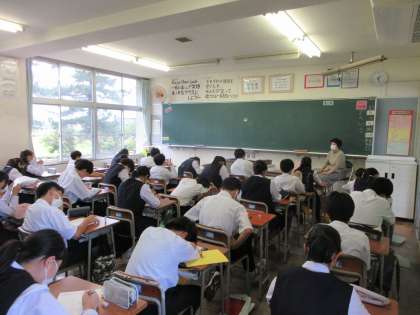 本日の5限目の授業の様子です。 教科は数学で単元のまとめテストをしました。