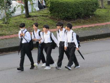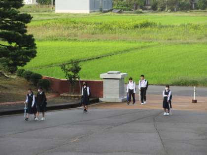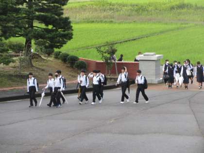 昨日の雨も止み、今朝は青空が顔を出す天気の下、本校生徒は今日も元気に登校してきました。