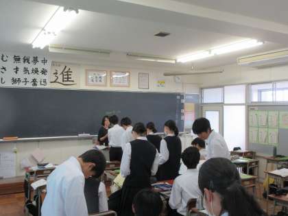 写真上段 3−1 英語 教室内で暗唱テストを行いました。