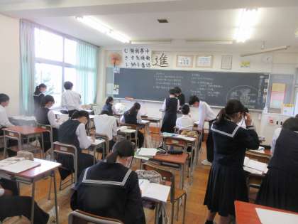 10月10日(火) 3年 授業風景 公開日 2023/10/10 更新日 2023/10/10 news 3年生の今日の授業の様子です。 テスト前日でテスト範囲が終わっている授業が多く、明日からにに向けてテスト対策をしている授業が多かったです。 写真上段 3−1 英語 写真中段 3−2 保健体育 写真下段 3−3 英語