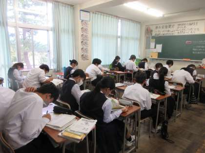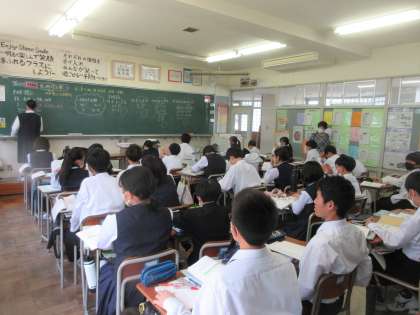 1年生の今日の授業の様子です。 写真上段 1−1 社会 写真下段 1−2 数学