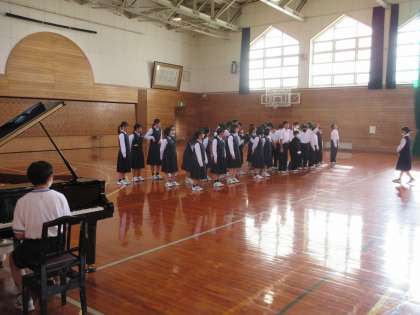 前半は教室で練習して、後半は体育館でグランドピアノを使って練習しました。